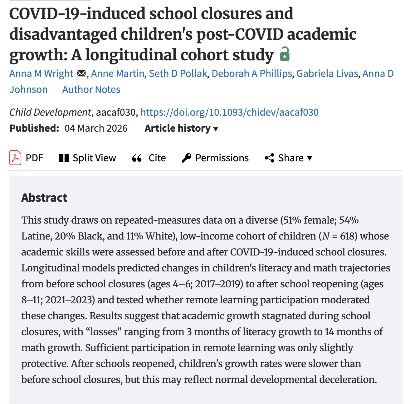 The George Kaiser Family Foundation, the University Strategic Organization Initiative at the University of Oklahoma, the Foundation for Child Development, 2017-2020, $225,0000